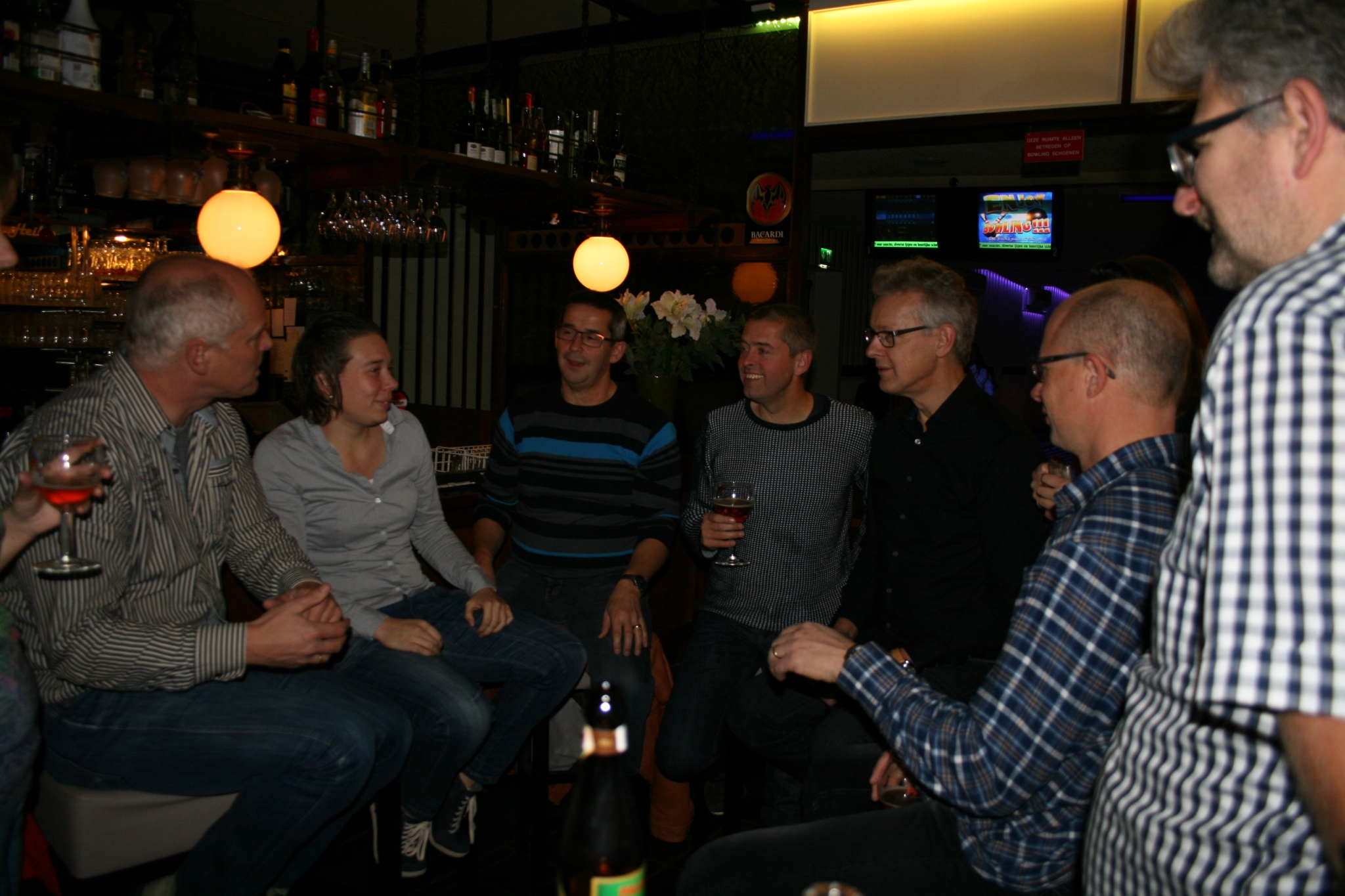 Onder het genot van een drankje werd er flink gestreden en gelachen. Na de eerste ronde was er tijd om een hapje te eten om vervolgens met nieuwe energie weer op de baan te verschijnen voor een tweede ronde. Jong en oud probeerden op eigen wijze de juiste techniek onder de knie te krijgen om een zo hoog mogelijke score neer te zetten. (zie foto´s)